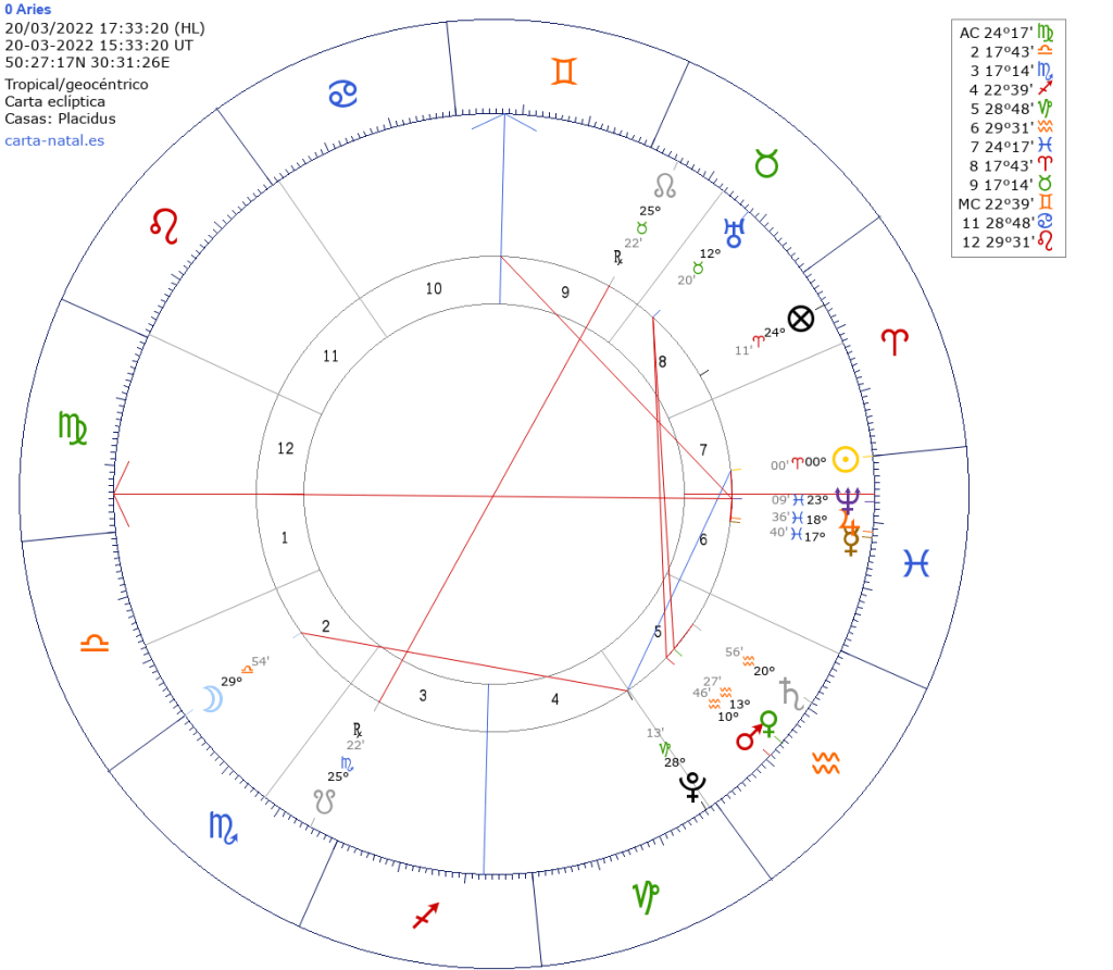 Por otro, en 2022 el Sol está en VII que son los enemigos de Ucrania.