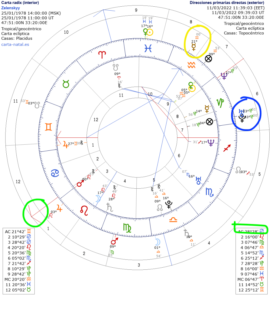 El presidente de Ucrania es ascendente Géminis, y por tanto su Mercurio es importante para él.